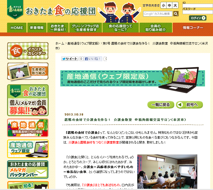 10/18(金)おきたま食の応援団さんにて『出張☆食トレ教室in米沢』をご紹介頂きました。