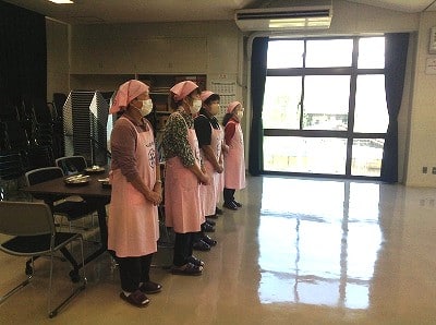 お弁当の調理を担当してくださった食生活改善推進員の皆さんも先の研修会で講話を聴いて下さり、調理実習で練習をしてくださった精鋭です。