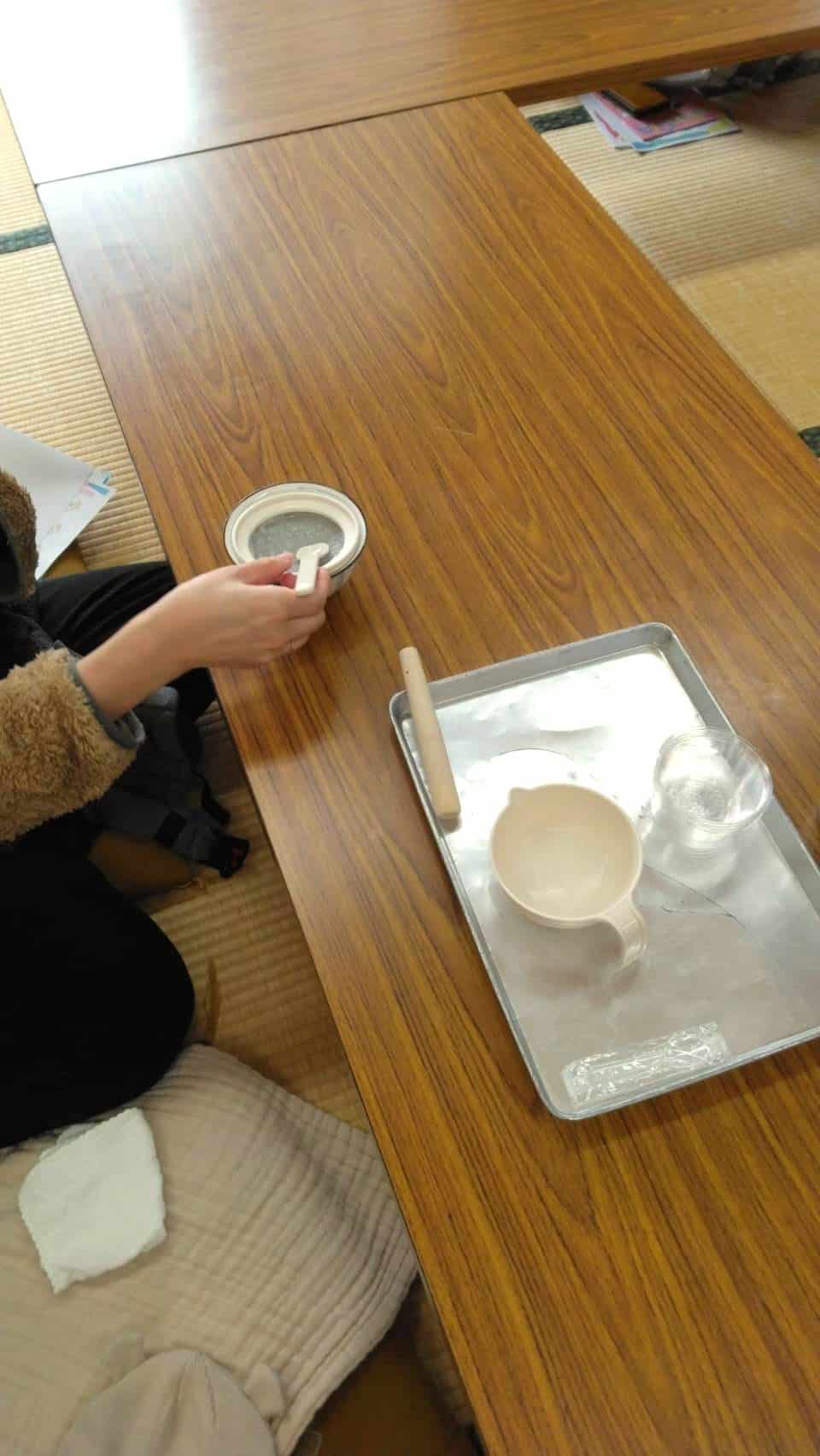 1時間の講座が終わったあとも残ってくださり、ハンドミキサーを触って使い方などについて熱心に質問してくださいました。実際にハンドミキサーを触ってあっという間にペーストにしたり、加減により粒を残した状態の中期の離乳食が作れることに驚いておられました。