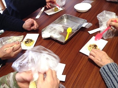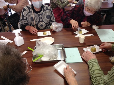 山形市のやよい町内会様が毎月開催されているサロンにて、食事作りトレーニング【食トレ】としてオーラルフレイルを予防するための介護・認知症予防の講話とおやつを一緒に作っていただきました!
