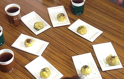 蒸し上げたばかりのさつまいもをお届けし、自分の分のお菓子をご自分でお作りいただきました。同じ材料とは思えない個性的な仕上がりで、皆様味にも見た目にも喜んでいただき、試食を兼ねたお茶会は大盛り上がりでした!