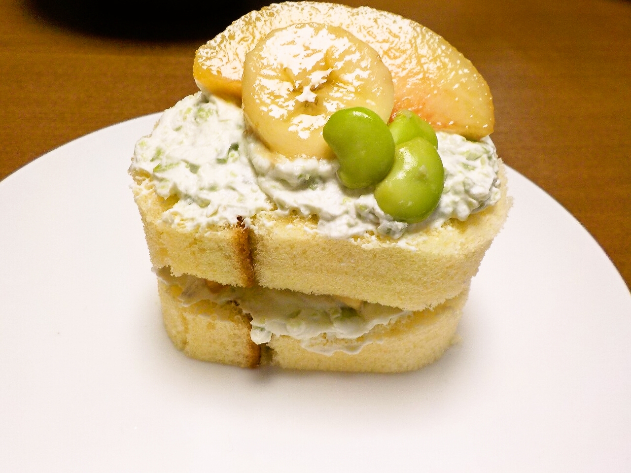 ・いつもの生クリームと違って、えだまめの味がするクリームが美味しい。