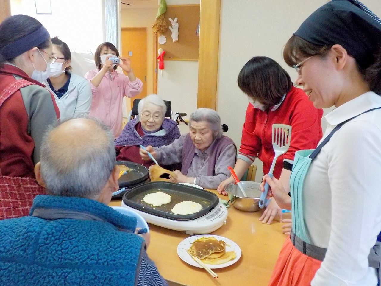 ・利用者さまは、自分の役割を認識し、がんばってホットケーキを焼かれていました。