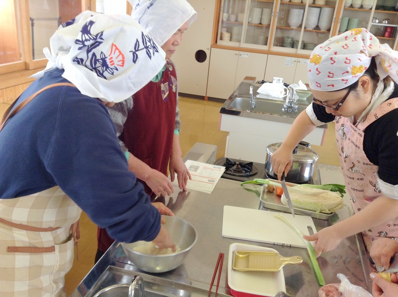 最初は遠慮していた男性の参加者の方も、途中から肉団子を丸めたり野菜を切ったりと、みなさんと一緒に楽しく料理されていました。