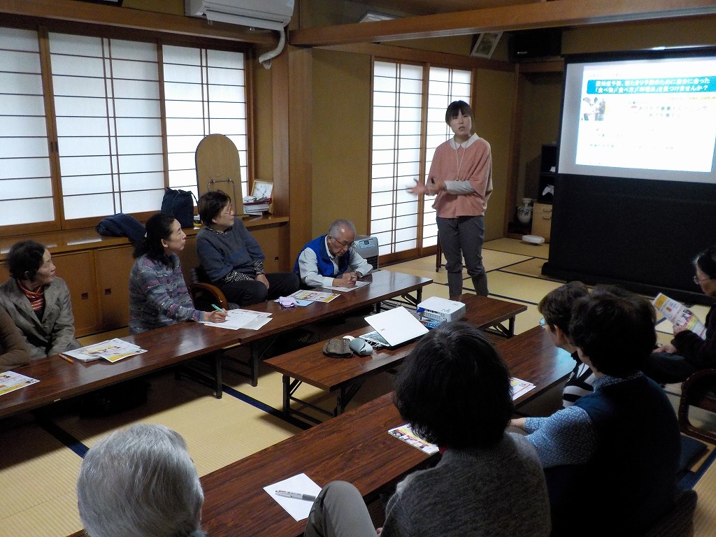 平成28年11月30日(水)に山形市の小荷駄町第3区集会所にて開催された、小荷駄町3区町内会さま、地域包括支援センターふれあいさま、山形市福祉推進部長寿支援課介護予防係さま共催の介護予防講座にて講師を担当させていただきました。食事に関する講座は初めての試みとのことでしたが、8月に荒楯地区にて開催した講座の様子を掲載していただいた包括さんのお便りを見て、「うちでもしたい!」とご連絡をくださったとのことでした。