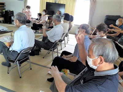 健康意識が高い皆さま。 週1回の100歳体操は交流と健康チェックの欠かせない場となっているようでした。