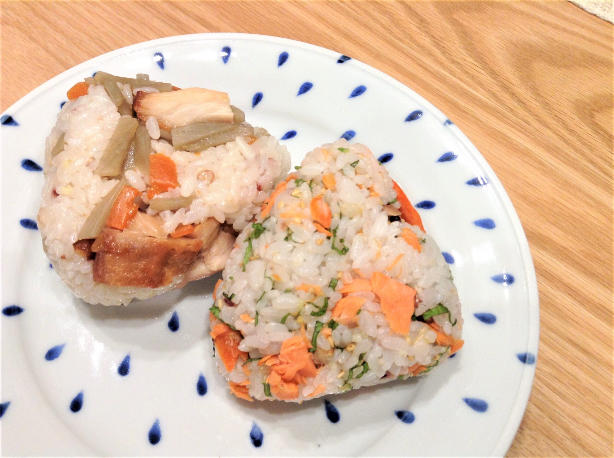 ① 混ぜるだけで本格!おかずオニギリ ② おつまみで!いかセロリ