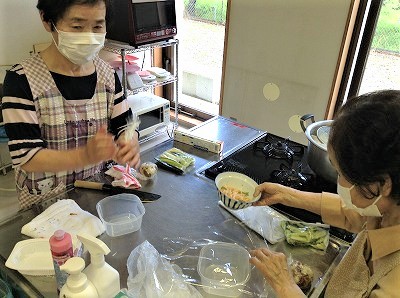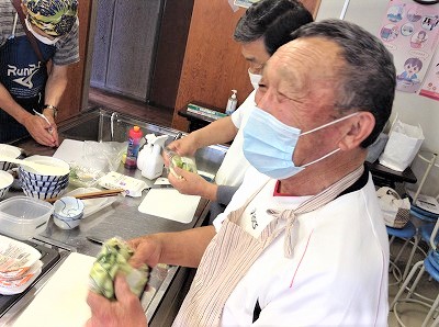 ● 昨年のメニューも作っています! ● お話が上手でとても分かりやすかったです。 ● 簡単すぎる位「カ・ン・タ・ン」だけど、 これなら「何となく」でも出来るから一番です!! ● 材料の「セロリ」はどちらからと言うと苦手な方だけど、 こんな食べ方があるんだと知れたし持ち帰って自宅で試しに食べて 旨かったらまた作りたい!(男性参加者さん) ● おにぎりも「ごちそう」になるんだなぁ~ ● 本当は、みんなと一緒に食べたいなぁ~。 (家に帰っても1人きりだし、一緒に作って食べると何倍も 旨いんだろうに・・残念でならないです)(男性参加者さん) ● めちゃくちゃ簡単だけど、こういったことが思いつきませんので 、教わる事が楽しいです(1人暮らし女性) など 今年は事務局と役員方からの希望もあり「男性も出来る初心者向け料理」を テーマにしていますが、案内のチラシを見て下さったこれまで参加頂いている ファンの方々から、「どうしても参加したい!!」と熱烈なコールがあったと 伺いました。 それでも男性の方も参加して頂いたようで、 次回はぜひ旦那さんに参加してみたら!と声がけもお願いしちゃいました。