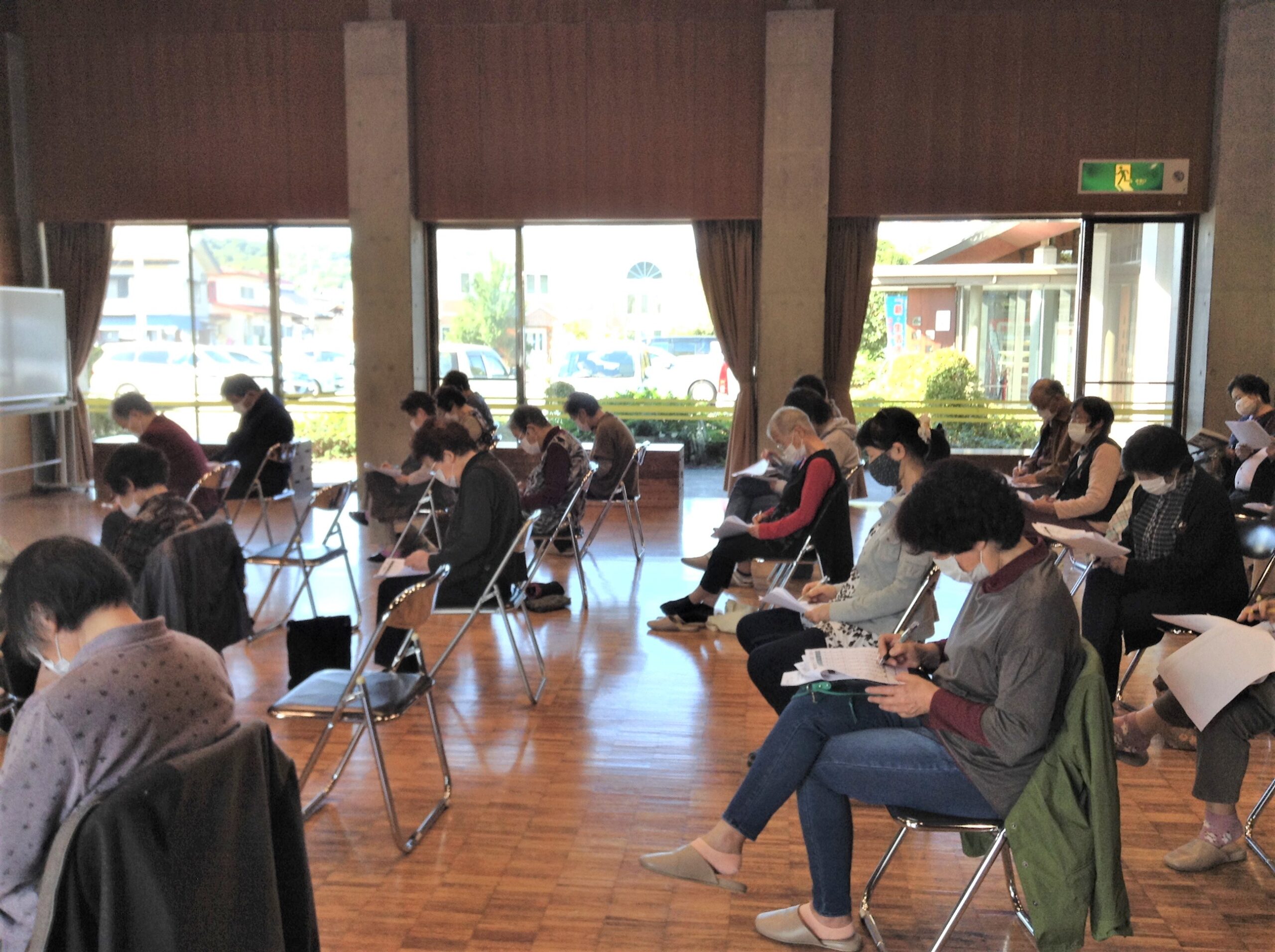 これまでですと、隣の方と和気あいあいに見せ合いっこしながら話をしながら取り組んで頂いたのですが、