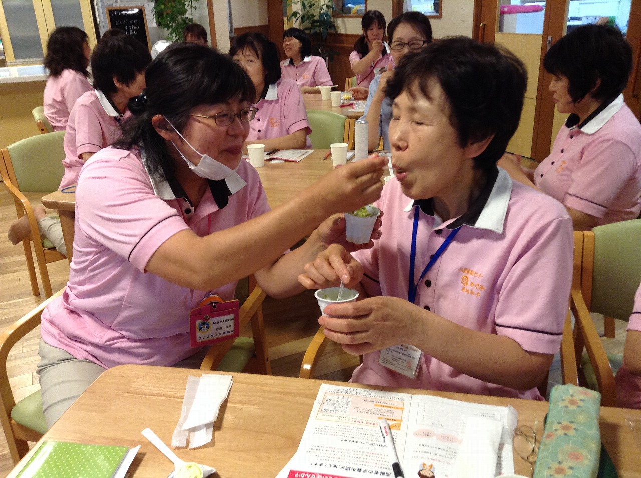 平成26年7月30日(水)に、寒河江市の「JA健康福祉センター」にて開催された、JAさがえ西村山さま主催の職員研修において、介護食に関する講義と演習を担当させていただきました。