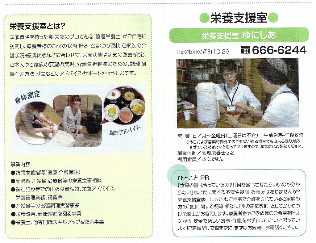栄養支援室ゆにしあでは、これからも地域の一員として、ご自宅で療養されている方とご家族の皆さまのサポートをしていきたいと思っております。
