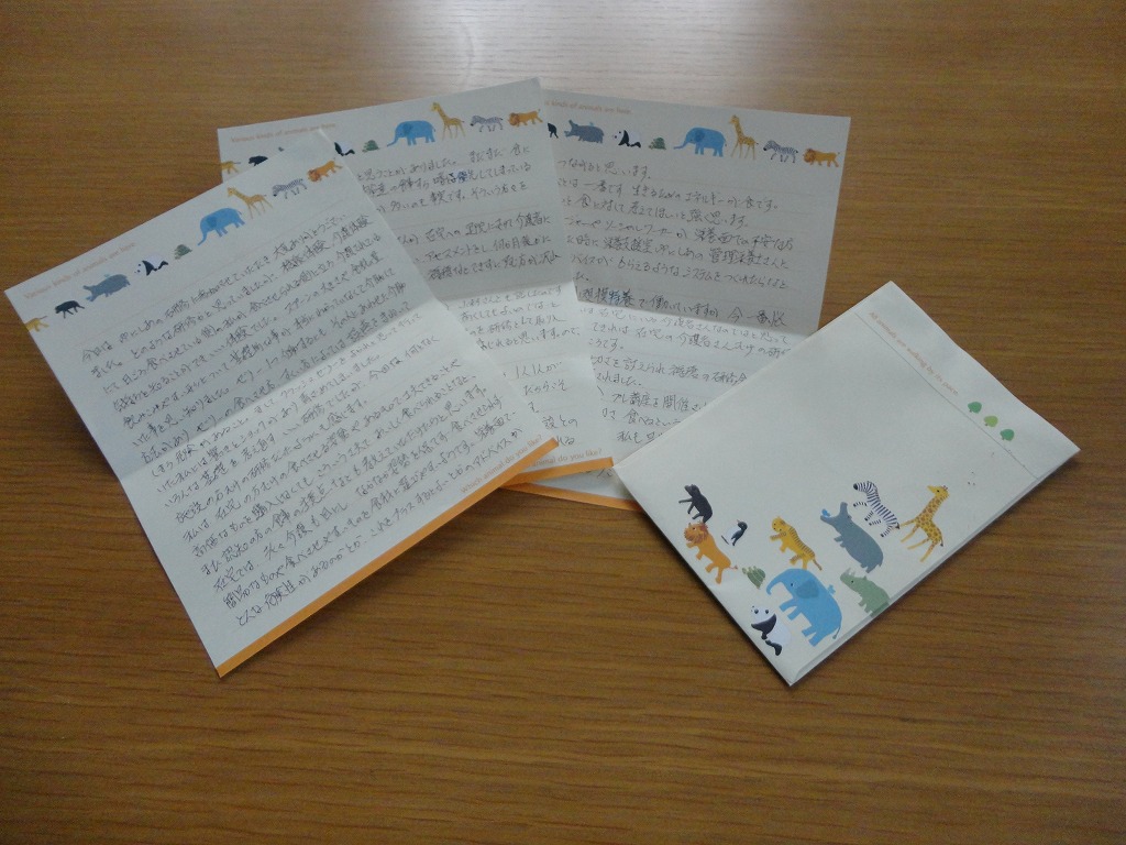 お手紙の中には、在宅での療養者の方の現状や在宅ケアに関わる訪問介護士さんや病院・施設との連携、食サポートの研修の必要性について、熱い思いが便箋3枚に渡って綴られておりました。