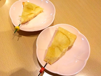 りんごの薄切り、りんごを1枚1枚バターで焼くなどの細かな作業も 職員さんの心配をよそに難なくこなされるのは体が覚えているからですね。 羽子板の形になるように形を想像いして慎重にカットして 正月にちなんだ串を刺したら羽子板型にしたリンゴケーキの完成です! 完成品に「なるほど~」お菓子の名前に納得されていました。 「おいしい~」 「うまいうまい!」 と皆さん綺麗に完食頂けました!