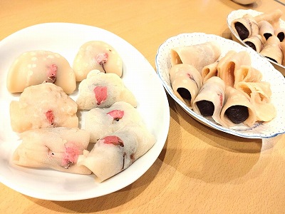 3月になり暖かい日も増えてきました。 待ち遠しい春の訪れを願って 桜の花を使った春らしいおやつにに挑戦頂きました! 今回も「切る」「読む」「ほぐす」「開く」「浸す」「並べる」 「流す」「すくう」「裏返す」「丸める」「絞る」「のせる」「巻く」 などの様々な作業をご利用者様主体にて行って頂きました。
