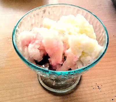 今回はももジュース、マスカットジュース、牛乳、カフェオレのベースに 生の桃、メロン、ブルーベリー、ココアクッキー、チョコレートパイを入れて 6種類のフレーバーを作って頂きました。 桃の皮むきや種取りなどの複雑な作業も 話し合いや協力をしながら ご利用者さまだけでしてくださいました。 正確性が要求される計量も集中してばっちりです! 塩と氷を使って即席のシャーベットなので 軍手をして選手交代しながら揉み揉み。 6フレーバーもあるため休憩はほぼなく 熱心に揉んで下さり 力を合わせて完成出来ました! 思い思いのフレーバー2~3種類の味を楽しんで頂きました。