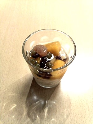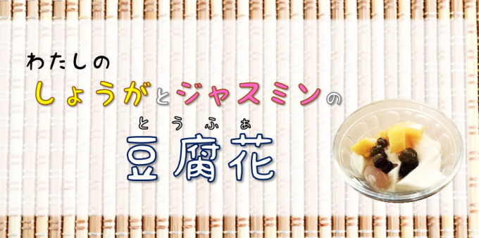 豆腐花はもちろん豆乳から手作り! アガーを使い焦げないように丁寧に火にかけ 目の前で氷水で冷やします。 焦げやすい豆乳も丁寧な混ぜ作業に 焦げずに綺麗な白のまま滑らかに仕上がりました! トッピングの彩豆も甘納豆を浸し マンゴーも均一にカット。 しょうが入りのジャスミンティのシロップは しょうがの皮をむいてすりおろして作って頂きました。 器に思い思いに盛り付けて頂き 私だけの逸品が完成しました!