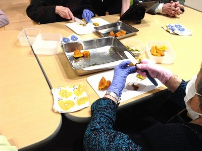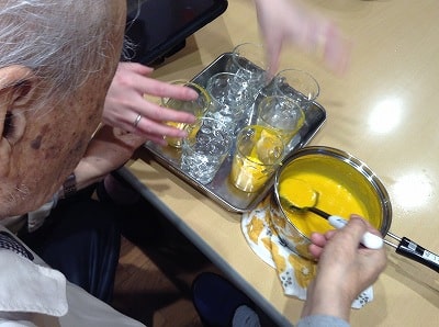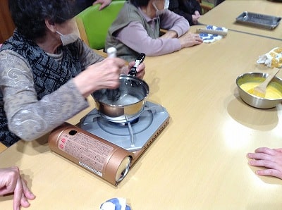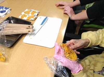今回も「計る」「切る」「取り除く」「潰す」「注ぐ」「混ぜる」「並べる」などの様々な作業をご利用者様主体にて行って頂きました。
