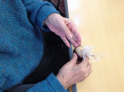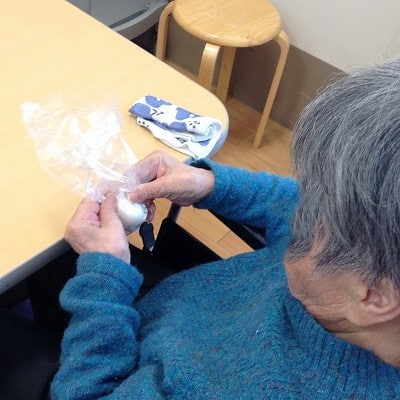 今回も「計る」「混ぜる」「潰す」「握る」「伸ばす」「絞る」「まぶす」「包む」「はがす」「置く」などの様々な作業をご利用者様主体にて行って頂きました。