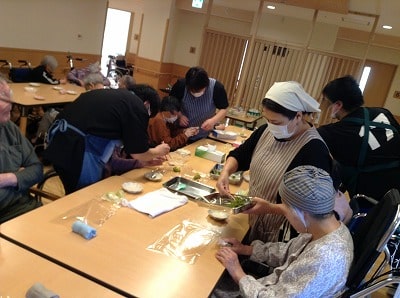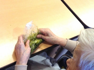 今回も「切る」「計る」「潰す」「選ぶ」「混ぜる」「包む」「丸める」「置く」などの様々な作業をご利用者様主体にて行っていただきました。