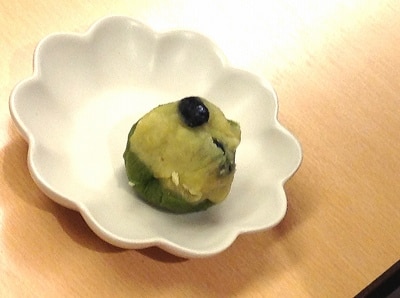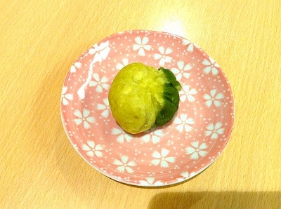 潰したさつまいもに抹茶を加えたさつまいもや黒豆を合わせてラップに包んで丸めていきます。「ラップに包んできゅっと絞ります!」とお伝えすると全盲の方もきれいな形に仕上げることができていました。和菓子屋さんのような見事な出来栄えにスタッフの方の撮影にも気合が入っていました。