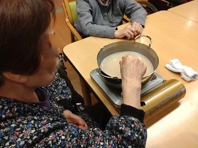 今年最初の食リハは、新しい年の訪れのお祝いの気持ちを込めた”あったかおやつ”に挑戦いただきました。
