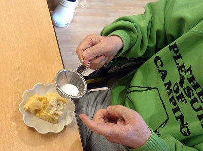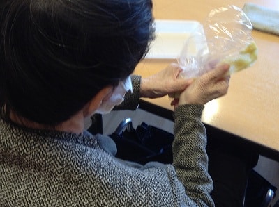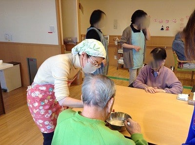 今回も「剥く」「割る」「潰す」「混ぜる」「すくう」「注ぐ」「並べる」「焼く」「切る」「振りかける」などの様々な作業をご利用者様主体にて行っていただきました。