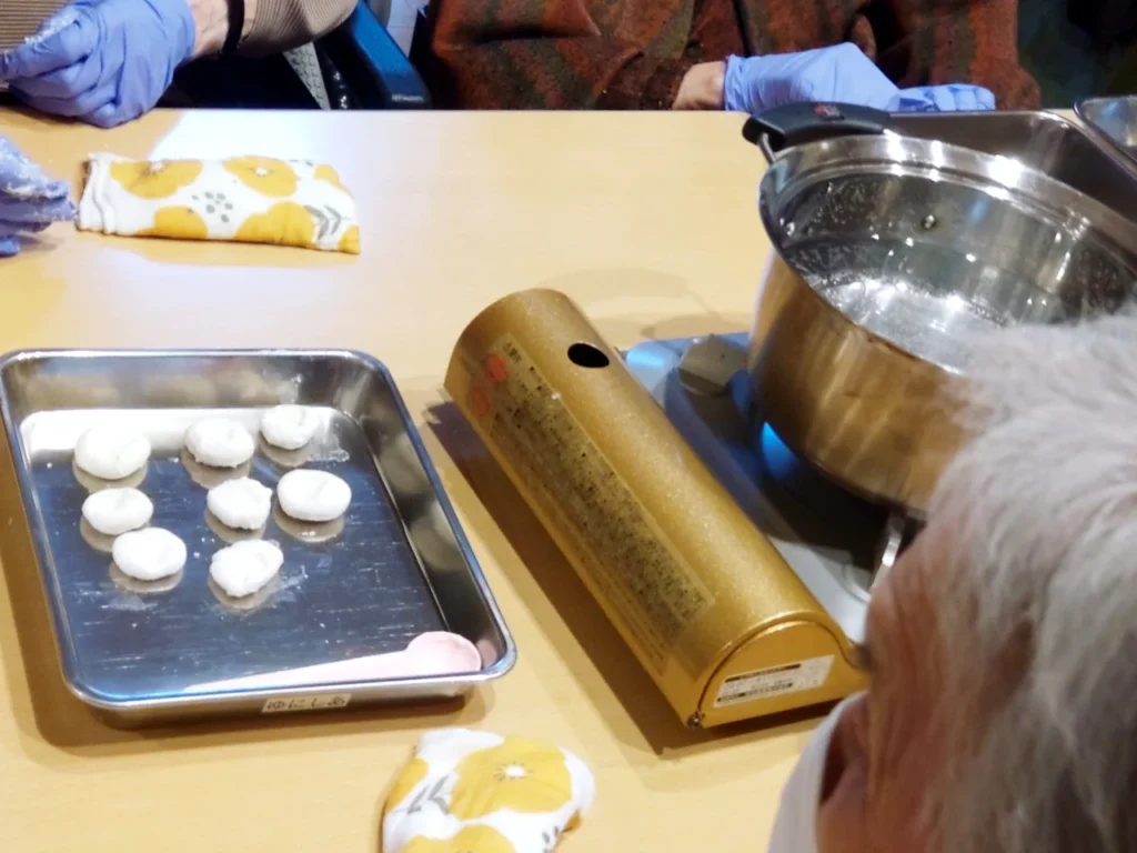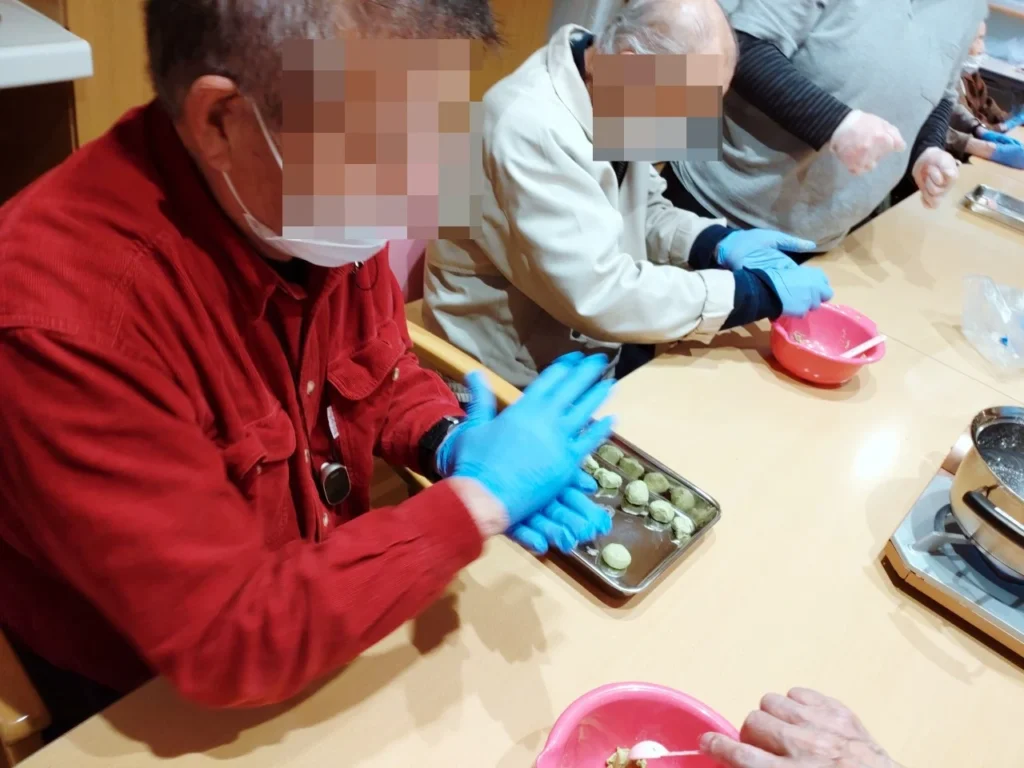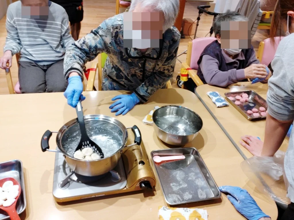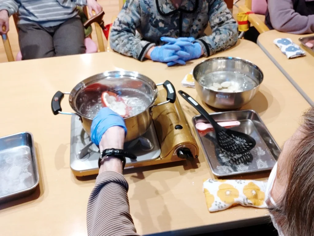 白玉だんごを丸める作業はまさに職人!と思わせる慣れた手付きの方もおられ、皆さんのセンスと手さばきで春らしいおやつが出来ました。次回も楽しく皆さんとおやつを作るのを楽しみにしています!