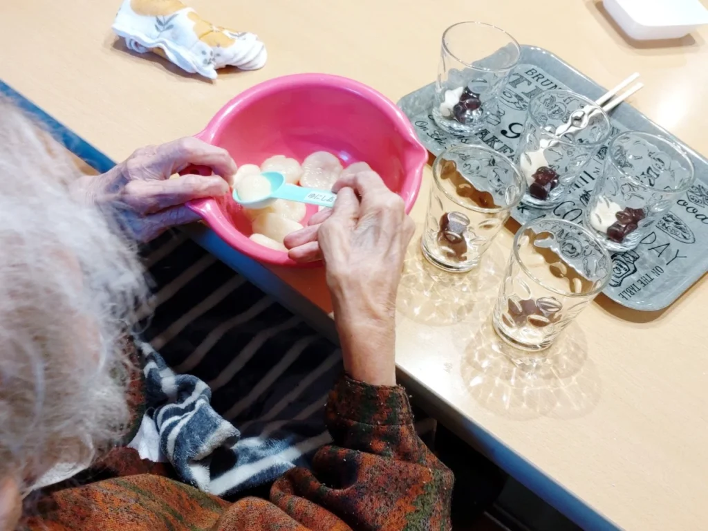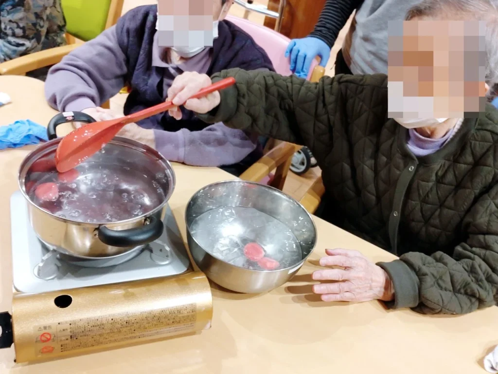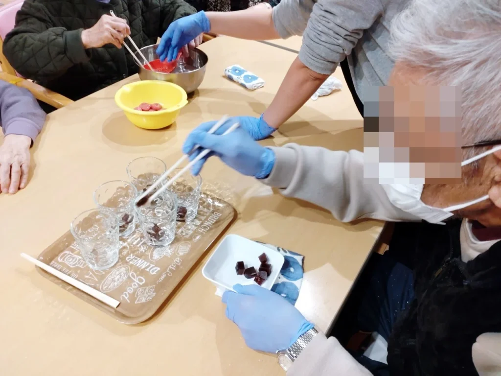 3月の食リハはひな祭りにちなみ、春を感じるおやつに挑戦いただきました。