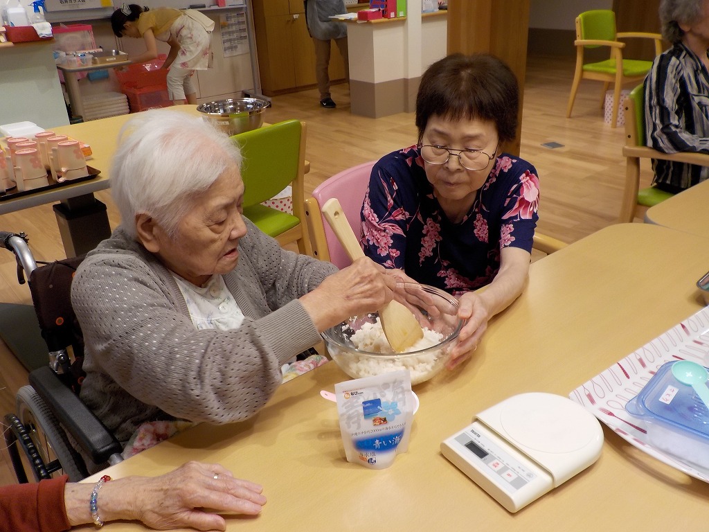 「包装を開ける」「材料を計る」「まぜる」「練る」「切る」「包む」に加えて、「輪ゴムで縛る」「氷水を作る」「爪楊枝で刺す」など沢山の作業に取り組んでいただきました。