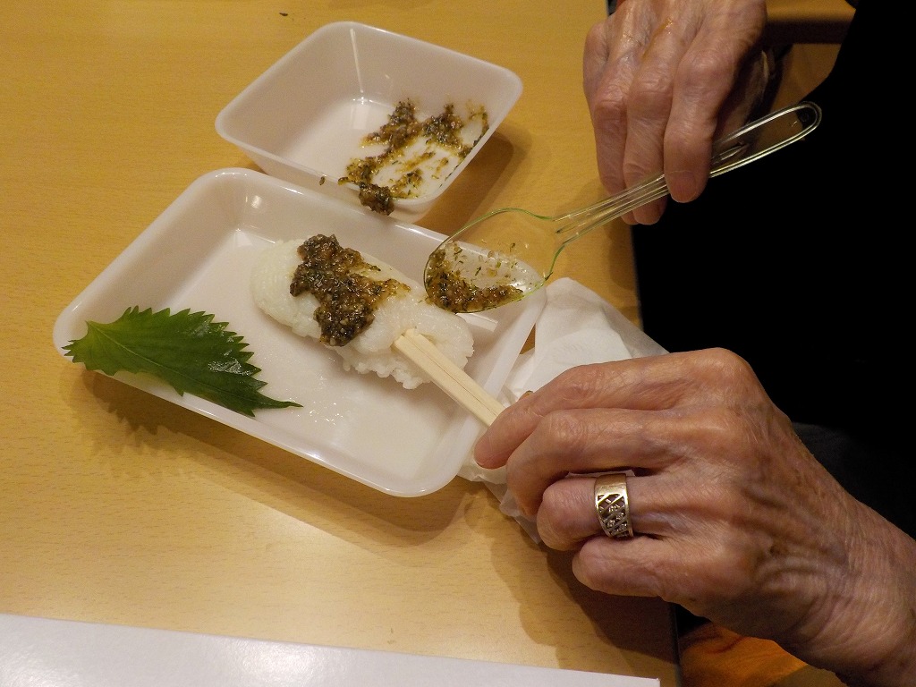 ○「五平餅!」とくしに刺したご飯を掲げて嬉しそうにされていました。