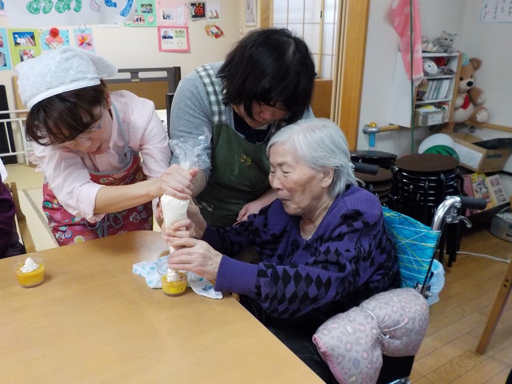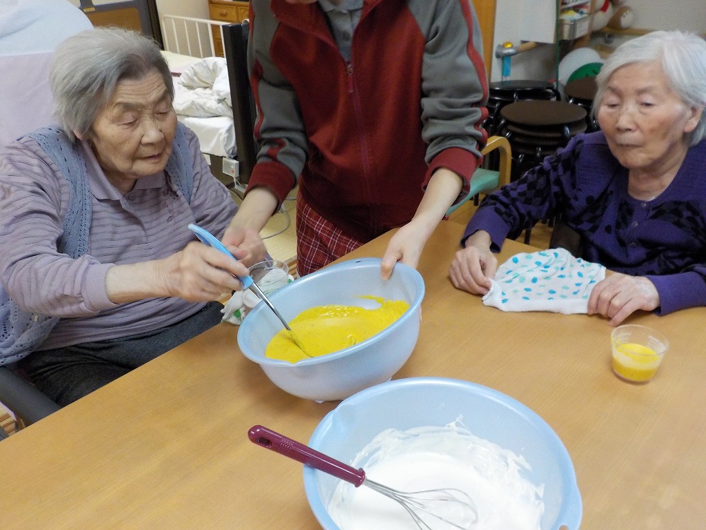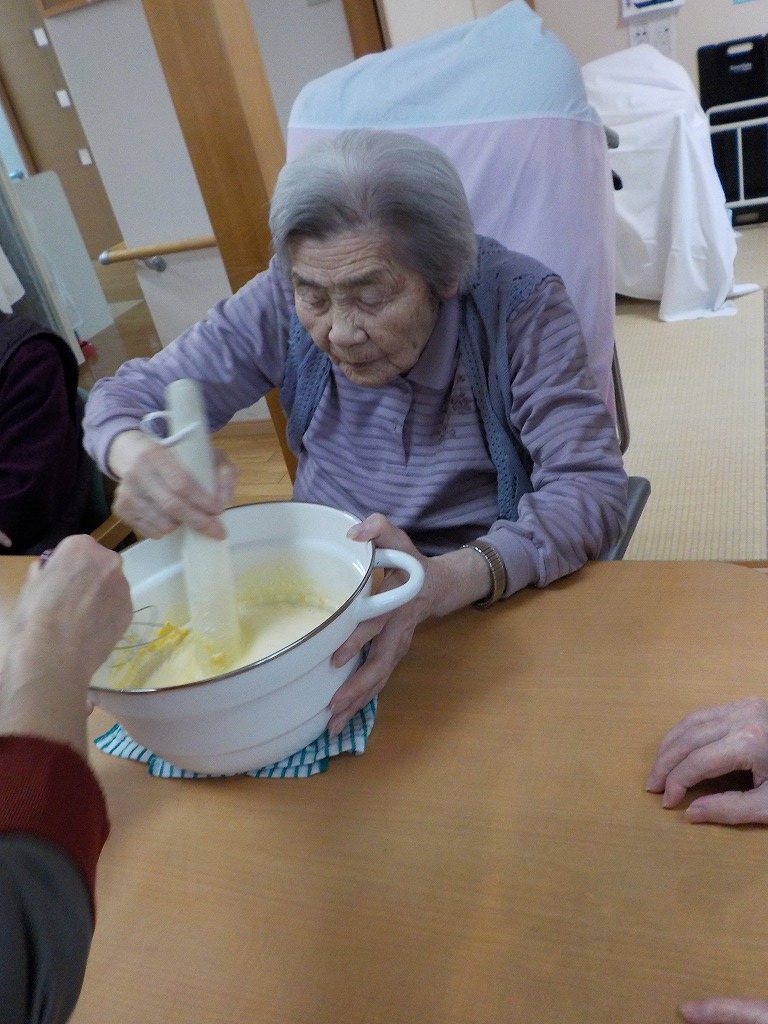 スタッフさんが代わりにするのではなく、ご利用者様自身の力で協力してふんわりホイップができました!