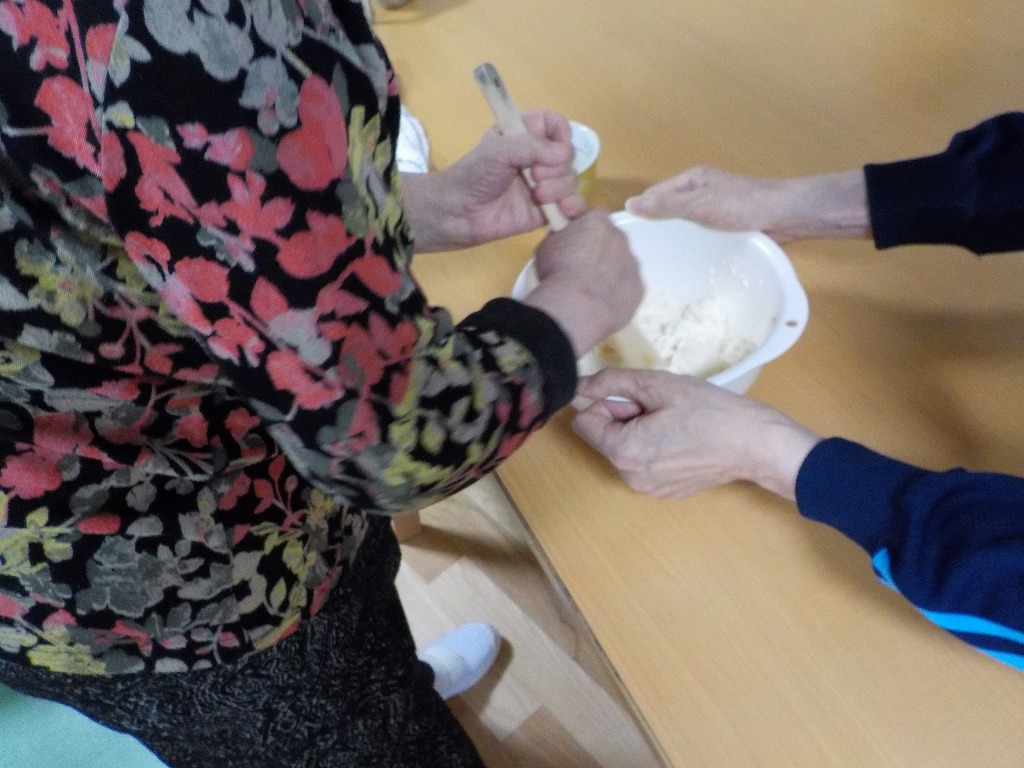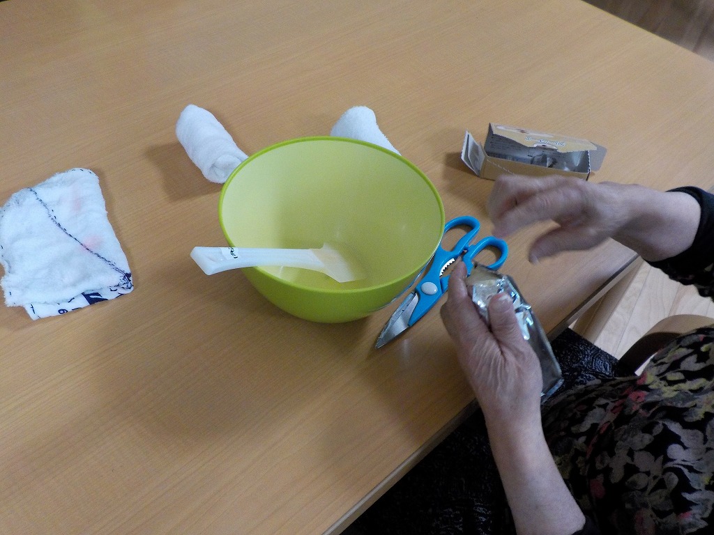 小規模多機能型居宅介護事業所のご利用者さまのおやつとそのちょっと前の時間を使って、おやつ作りを行いました。