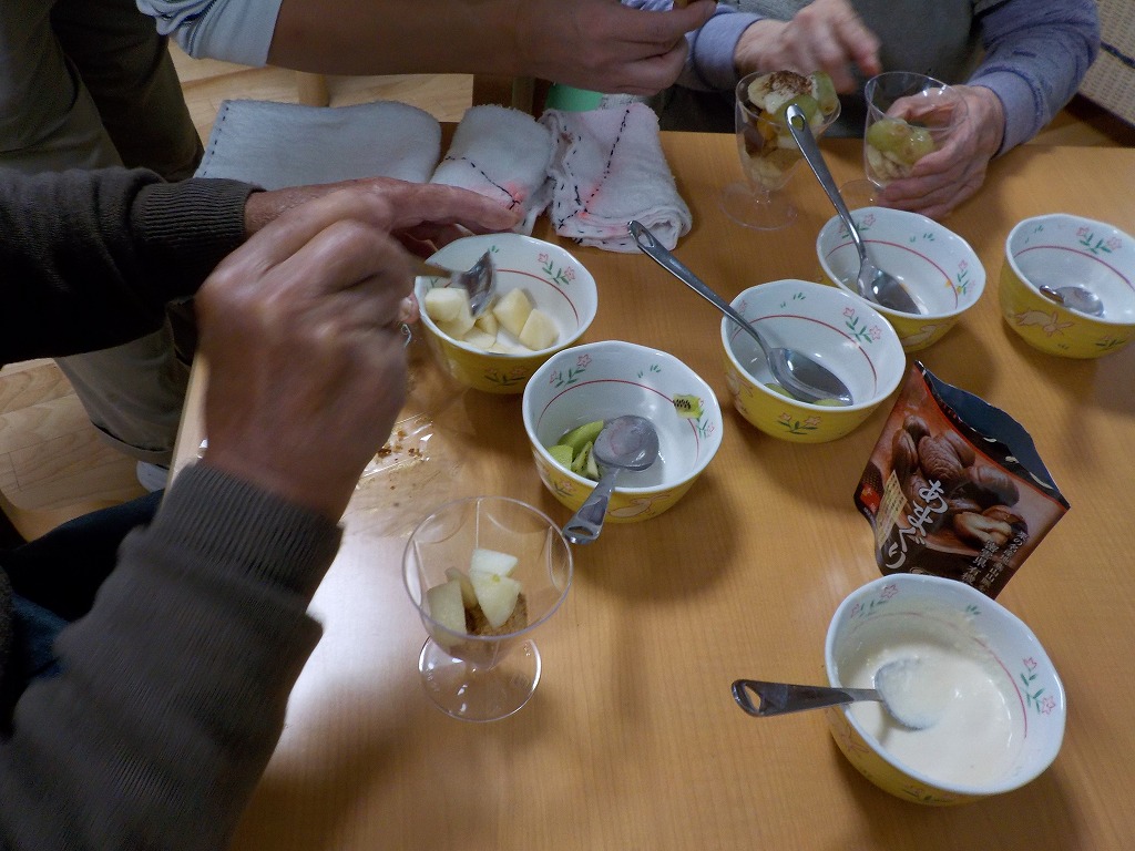 男性のご利用者さまも多くおられましたが、慎重に丁寧に混ぜたり、包丁を使って切って下さいました。