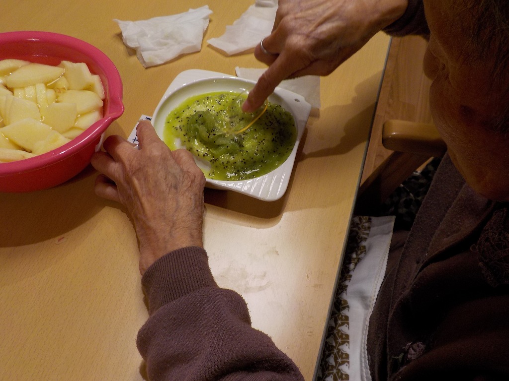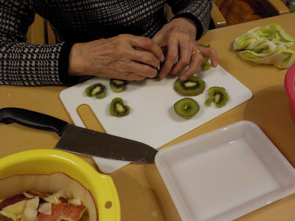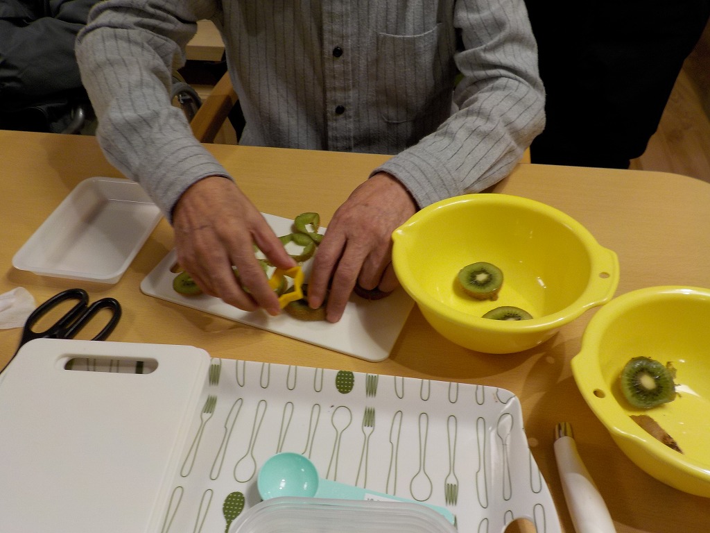 旬のキウイフルーツは★や♥など思い思いに型抜きをしたり、ミキサー食を食べられている方も食べられるソース様にすりおろしていただくなど、キウイフルーツ1つとっても、切り方は何通りもあります。
