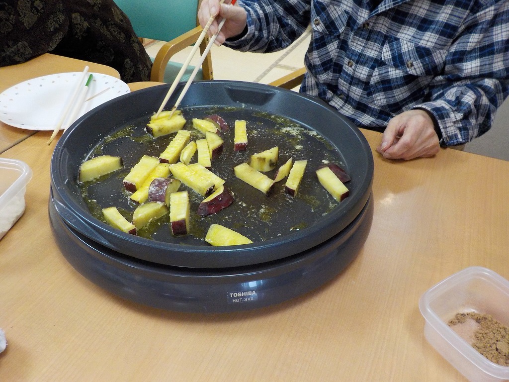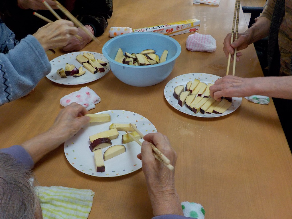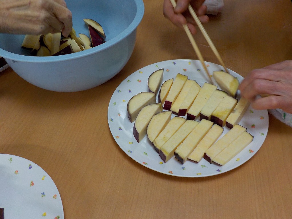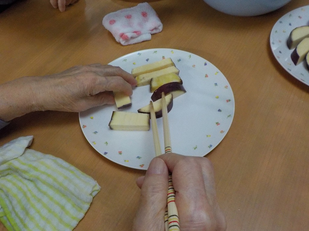 芋の日の通り加減の確認では、「箸よりも爪楊枝がいいわ。」とご利用者さまより提案があり、ご用意しました。