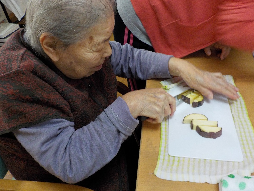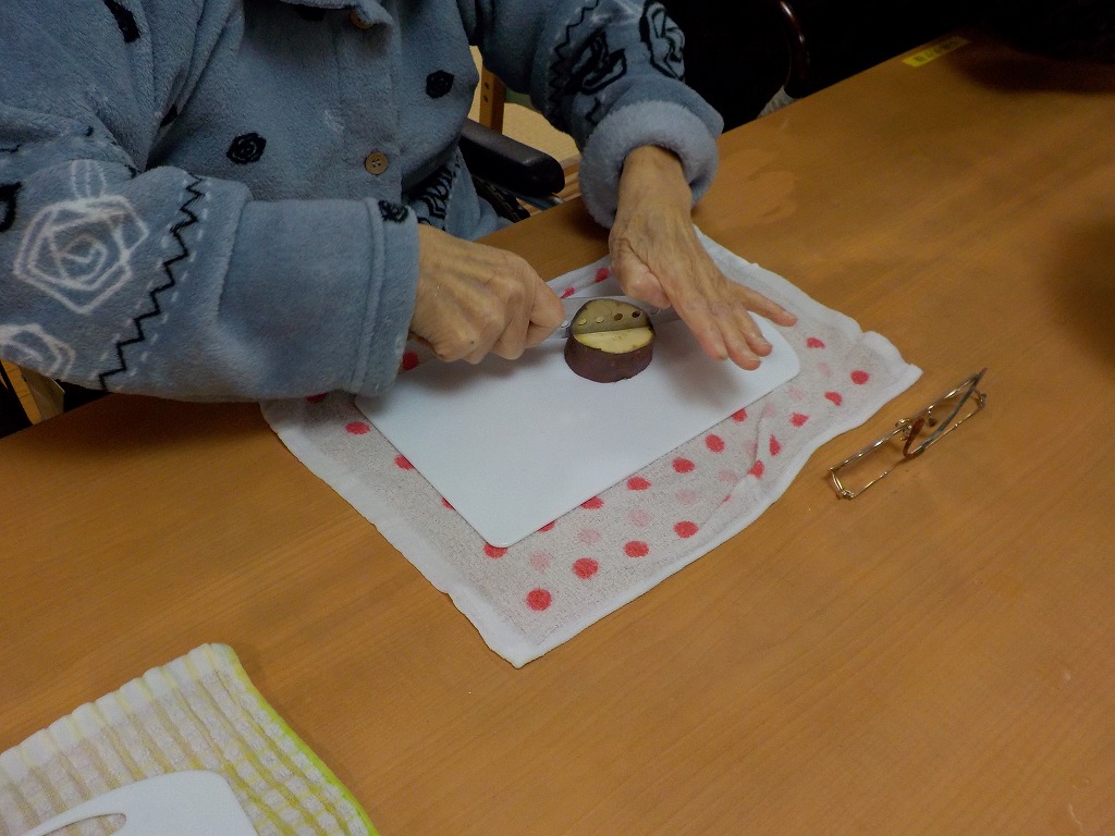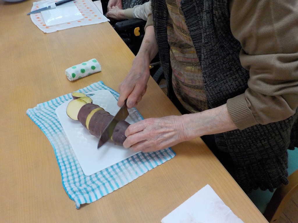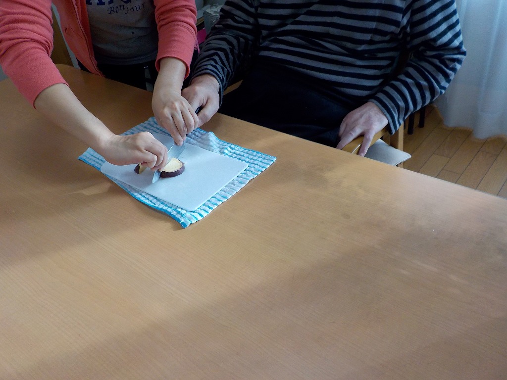 芋の日の通り加減の確認では、「箸よりも爪楊枝がいいわ。」とご利用者さまより提案があり、ご用意しました。