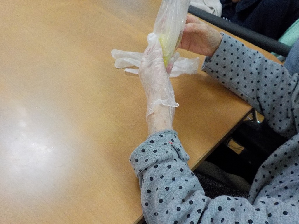 ○ ミキサー食の方もさつまいもさつまいもを潰す作業を袋に入れた状態で握ることでできていました。