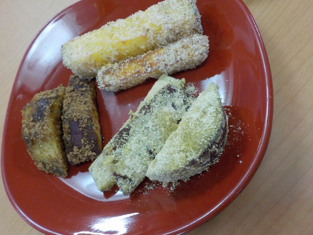 今回も「切る」「並べる」「計る」「炒める」「まぶす」「取り分ける」「潰す」「混ぜる」などの作業をご利用者さま主体で行っていただきました。