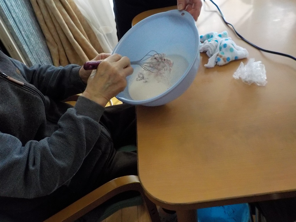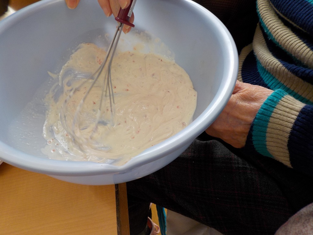 〇 生地の混ぜ方にムラがあることを指摘してしまい、同じことを他のご利用者様にも言われ、少し作業が止まってしまう方がいました。