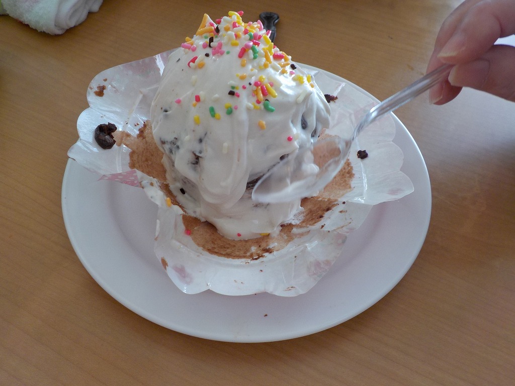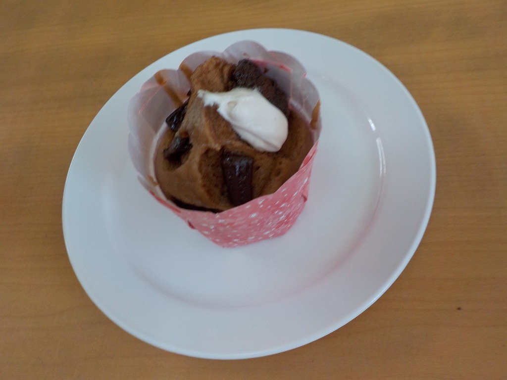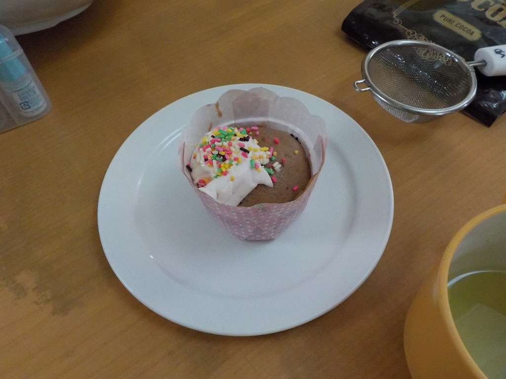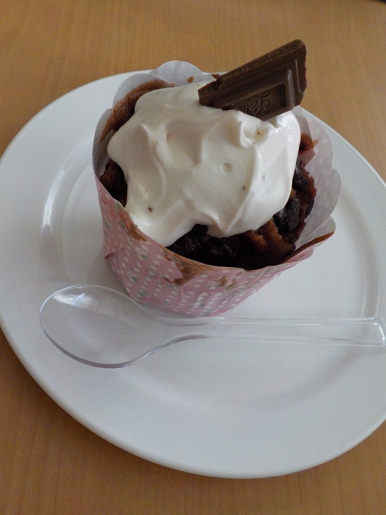 頑張って泡立てたホイップクリームやチョコスプレー、とっておいたチョコレート等をトッピングして完成です!