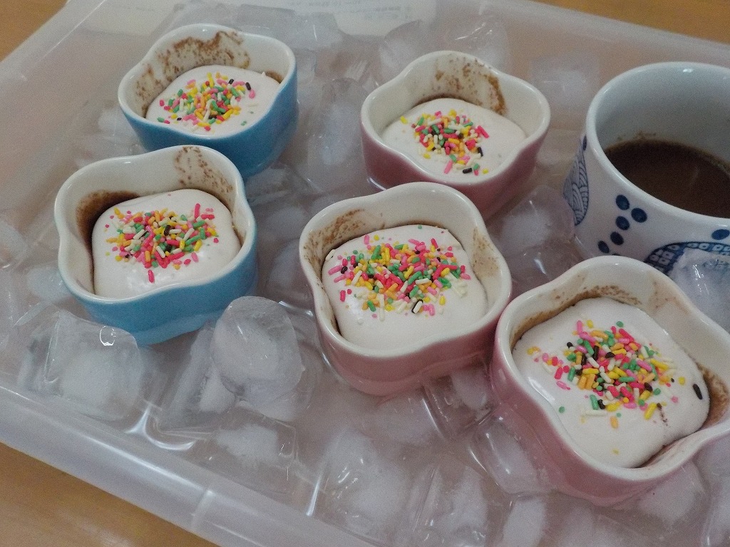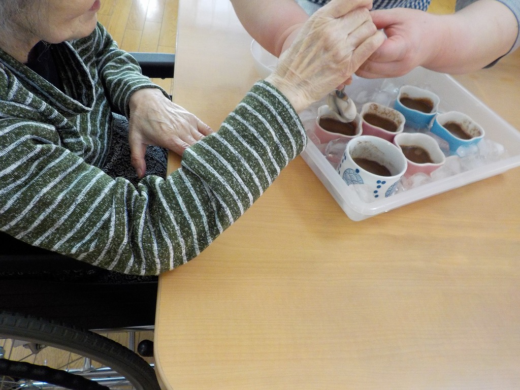 常形の方が「プリンいいな~」とミキサー食の方をうらやましがる様子がありました。いつもの逆ですね!