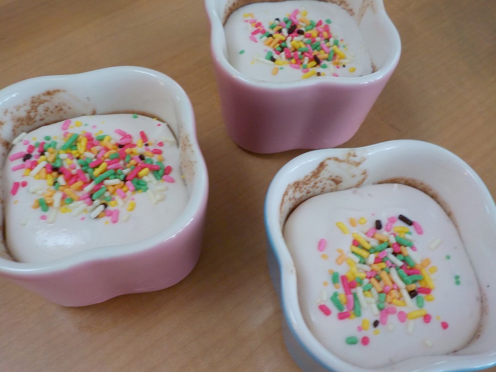 〇(チョコスプレーをかけたため)色もきれいにかわいくできました!