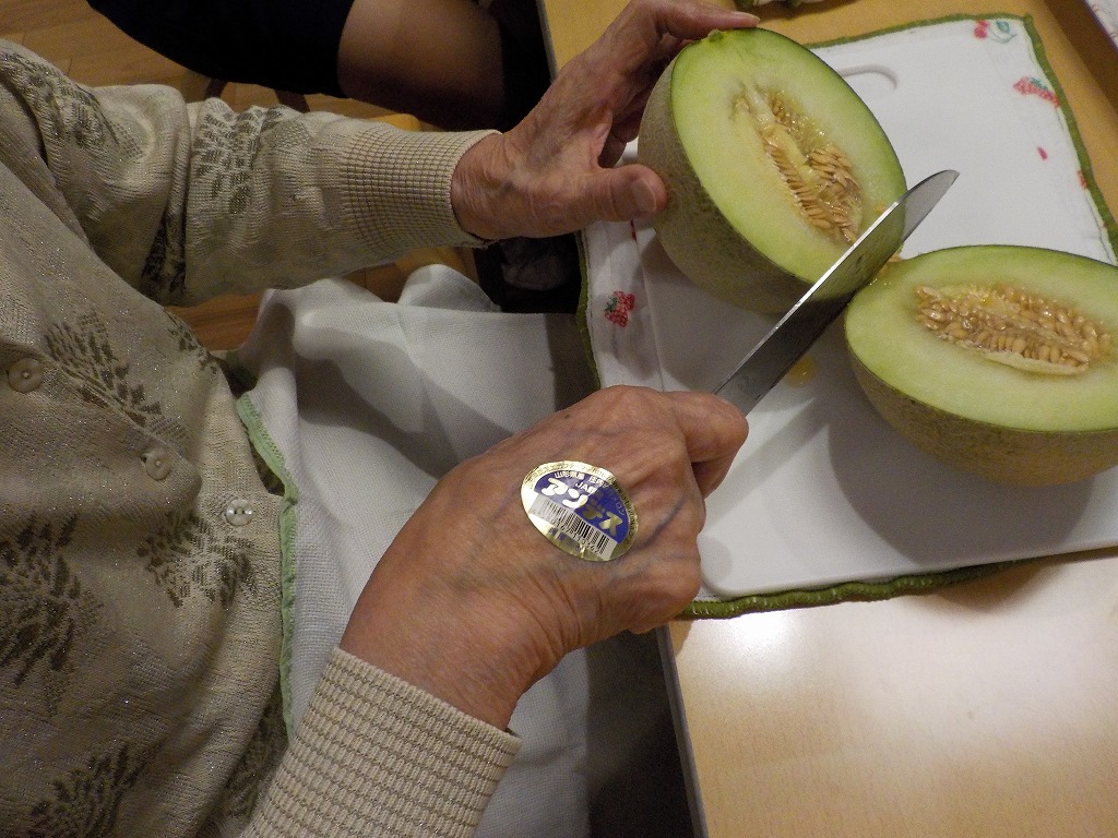 ○ 小さい包丁をサバイバルナイフ風に持ってバナナを切る男性利用者様がワイルドでしたが、危なげなく、感心しました。