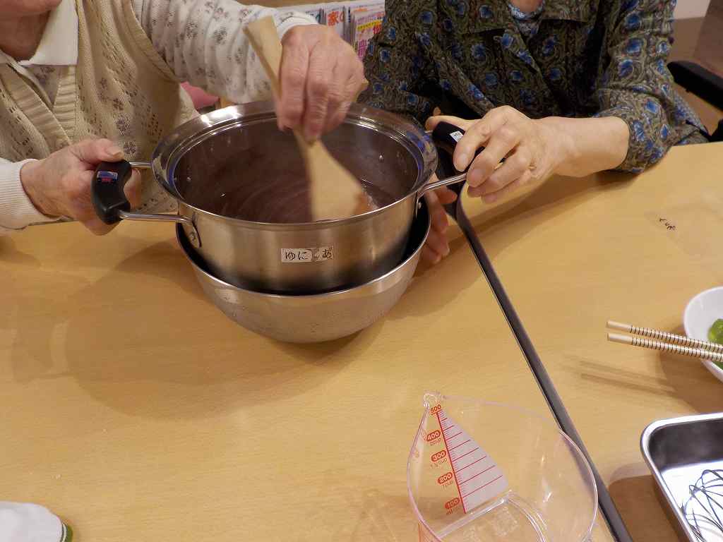 正確さを求められる寒天の計量や力を要するあんこを入れての練り作業も、