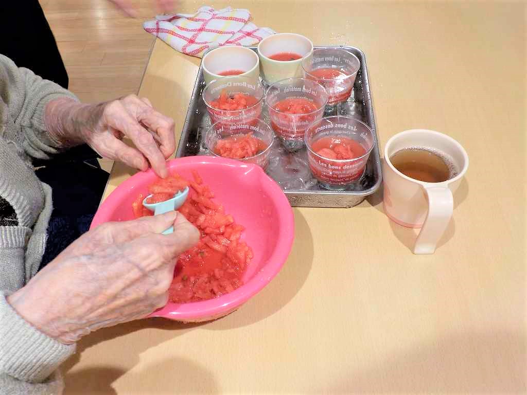 旬のスイカを使ったひんやりデザートに挑戦頂きました!