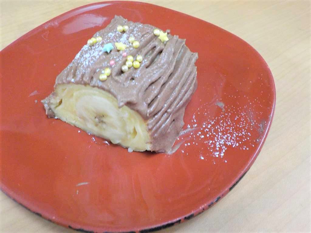 バナナを軸にして薄焼きの生地を何度も巻いています。