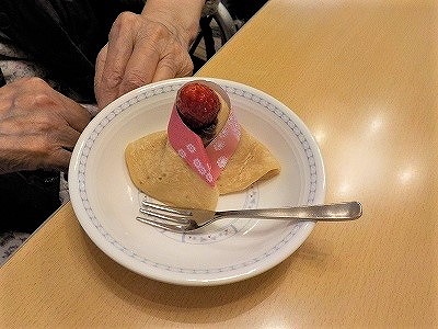 普段はミキサー食を召し上がっている方や食事介助を受けている方も いちごと包丁を目の前に置いてお声がけすると 上手にヘタを切り落して下さいました。 普段は経管栄養の方も 袋に入れたいちごを潰したり シェイカーに入れたミルクプリンを混ぜて頂くなど たくさんの作業を手伝って頂き ユニット全員のご利用者さまにご参加頂くことが出来ました。